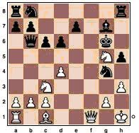 1.d4 g6 2.e4 Bg7 3.Nc3 d6 4.f4 c6 5.Nf3 h6 6.Bc4 Nf6 7.0–0 Qb6 8.Kh1 Ng4 9.h3 h5 10.f5 gxf5 11.exf5 Bxf5 12.Bxf7+ Kxf7 13.Ng5+ Kg6 14.Rxf5