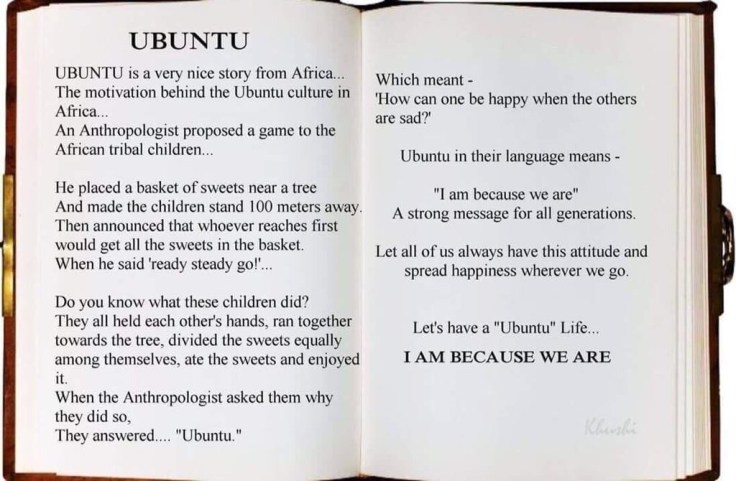 But I came across this short story which precisely explains essence of Ubuntu: