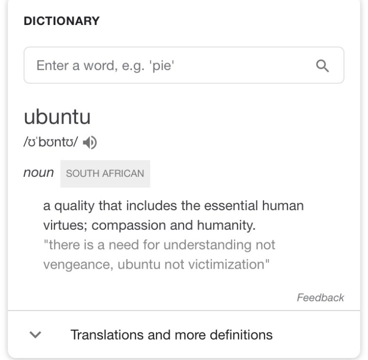 The dictionary meaning of African word Ubuntu is as follows: