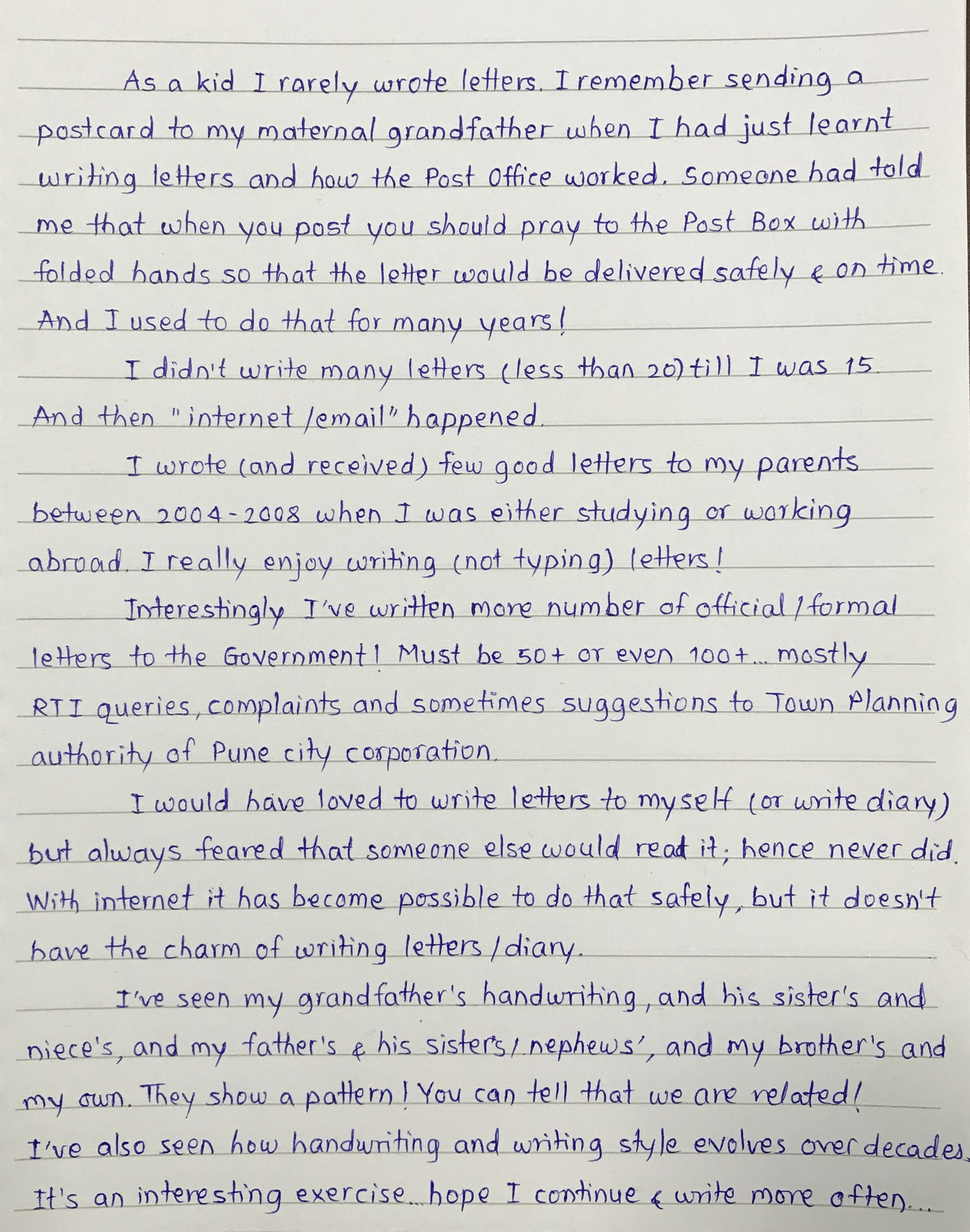 This post is inspired by Ramana Sir’s blog post with the same title – Letter Writing!