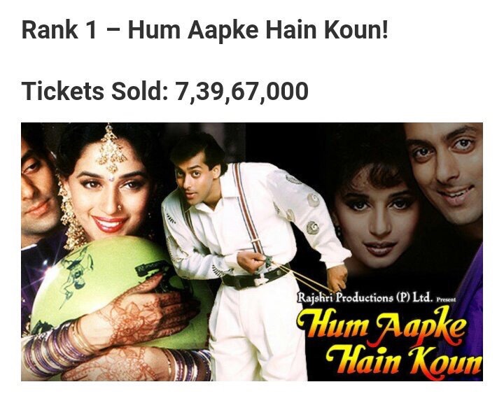 Today movie success is measured in Crores. But I feel that’s a wrong measure, because over period ticket prices will keep on growing. Comparable measure could be the number of tickets sold or footfall. Again that’s not a very good measure because now there are so many ways of watching movies (online streaming etc) and also movies are competing with so many avenues of emtertainment which didn’t exist earlier in 1990’s – TV shows, Internet, web series, Youtube or even IPL/ T20 cricket (which competes with movies). But tickets sold is still a robust measure.