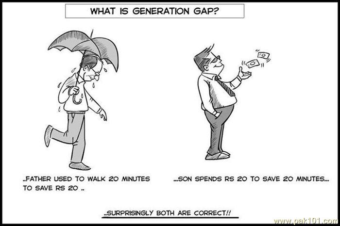 Generation gap is not because of age difference, but the difference in attitudes or approaches. For certain things I might want to be just like my grandfather, even though the rest of the world moves on. For certain other things, I would prefer to be like my grandchildren (who are not born yet).