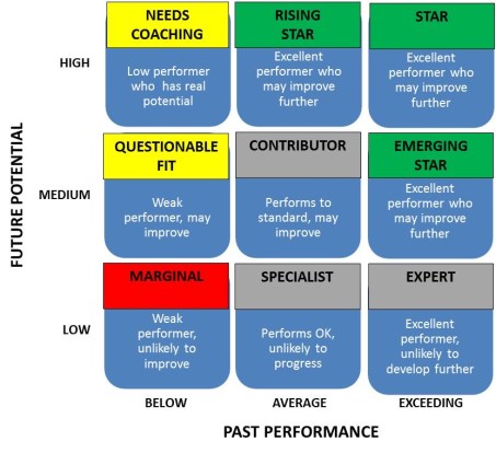 MBA is cursed with theories and 2×2 Matrix. I agree that it is often overdone. However, it’s just a tool. So good or bad aspect lies in how the tool is used – not in the tool itself. In the context of “Potential vs Performance”, I found following grids very interesting and thought provoking.