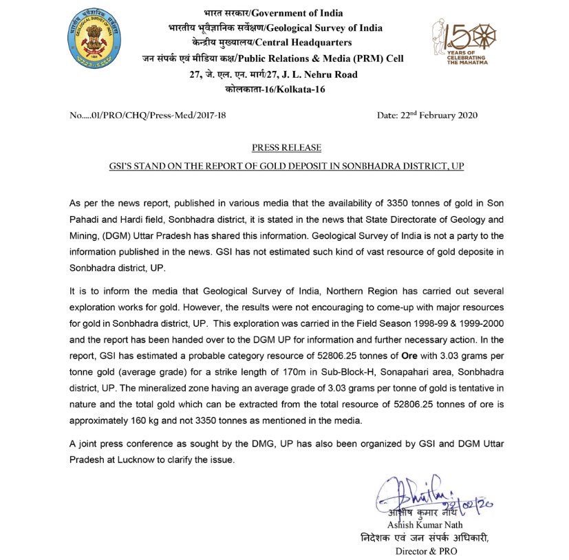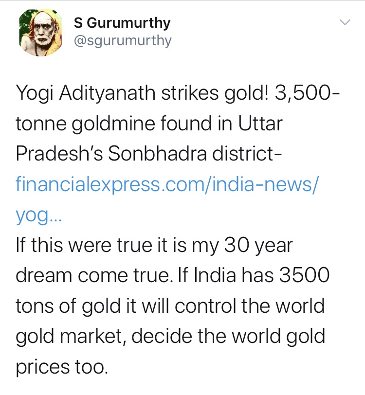 The news was about GSI (Geological Survey of India) finding “3500 tonnes of gold” in Uttar Pradesh!