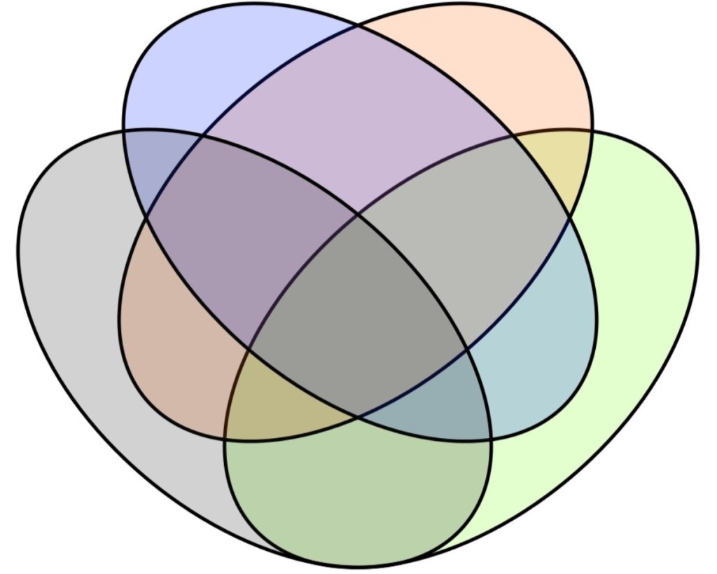 And here’s a symmetric four-set Venn diagram John Venn made using ellipses
