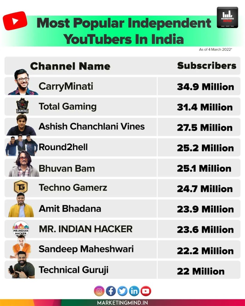 India now has nearly 4,000 Youtube channels with more than 100,000 subscribers. Some of them have massive following.
