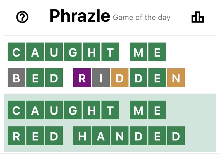Here the phrase works as an additional clue. For example, if you know the phrase “Caught Me Red Handed” and once you get enough letters to get “Caught” and a couple of other letters in Red Handed, it’s easy to crack. That’s exactly how I did it.