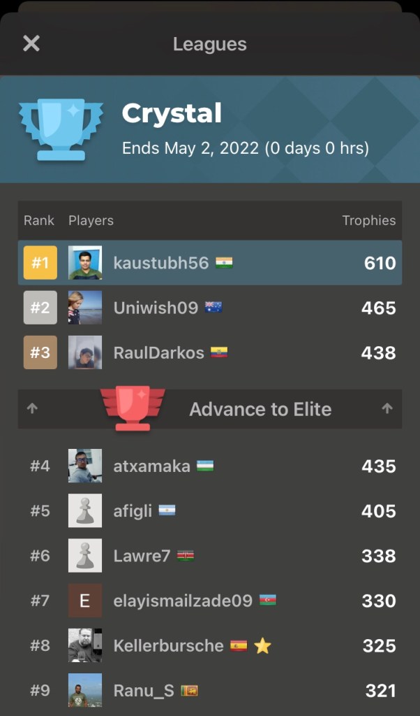 I hope to continue my progress both in online chess and in FIDE rated tournaments.