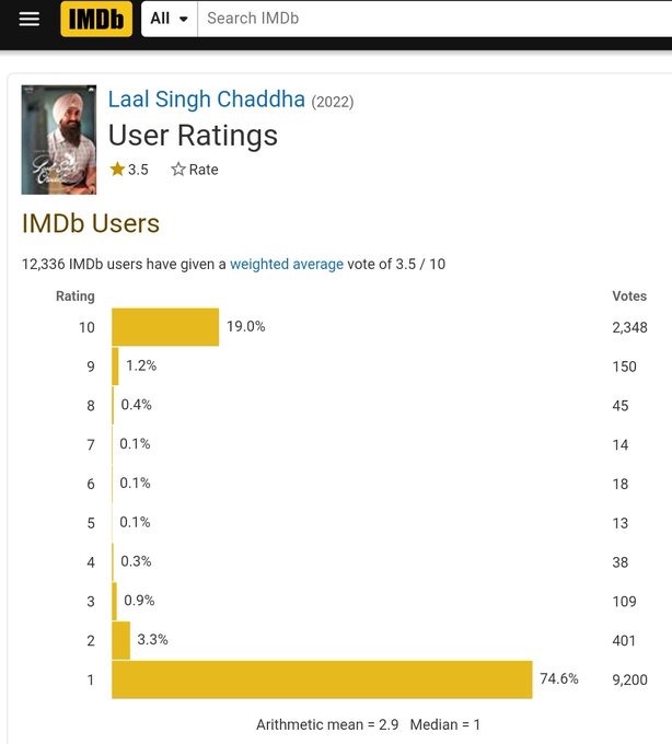 So when LSC promotions started, Bhakts started trending #BoycottLalSinghChaddha. Tweets like below called for downrating LSC on IMDb – the world’s most popular movie database.