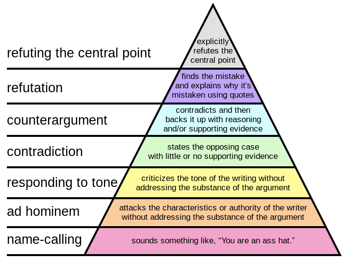 However, recently I read about the Hierarchy of Disagreements and it suddenly struck to me how my fights/disagreements happen. Here is the pyramid: