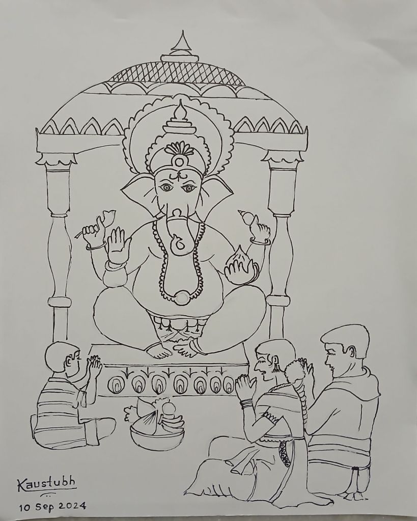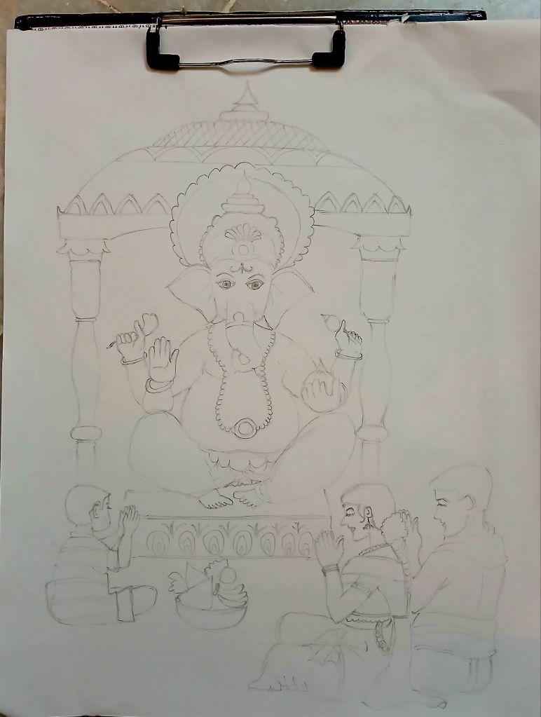 मुलीच्या गणपती च्या चित्रपासून स्फूर्ती घेऊन मीपण काही तरी काढायचा प्रयत्न केला…मला खूप मजा आली!