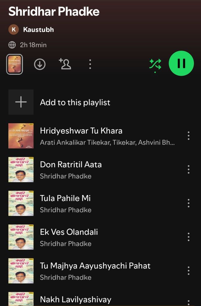 बहुदा श्रीधर फडके ची playlist बनवणारा आणि ती गाणी ऐकण्याची शिफारस करणारा मी एकटाच असेन. किंवा ती…जर आवड बदलली नसेल तर. शेवटी आपण ज्यांच्या सहवासात राहतो त्यांचा आपल्या आवडी-निवडीवर प्रभाव पडतोच… आणि आपल्या लाईफ पार्टनर चा जरा जास्तच.