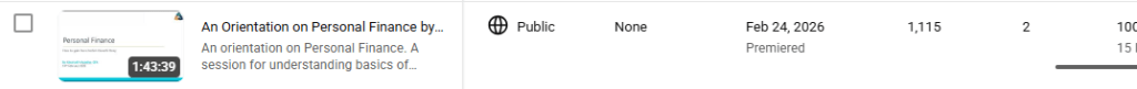 I am getting to a logical end of few of those things and I’ll post details soon. One thing I posted about few days back was the session I conducted on Personal Finance, which I uploaded on Youtube on 24th February.